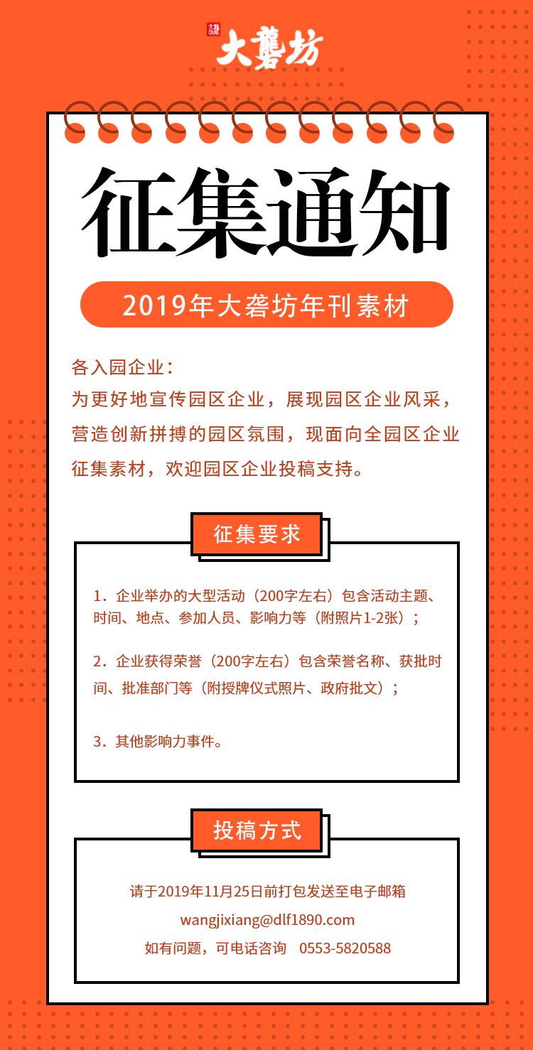關于2019年大礱坊年刊素材征集通知