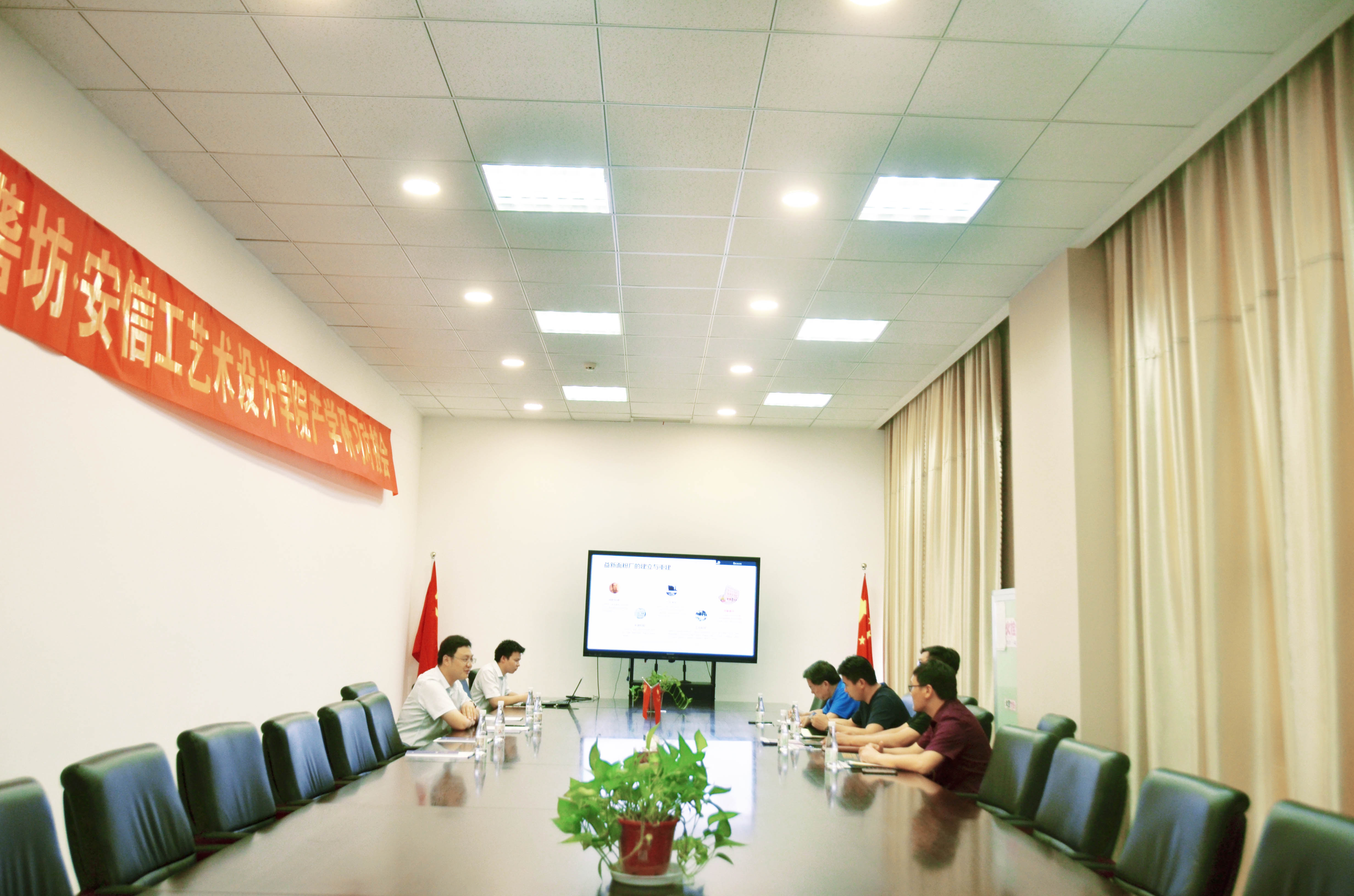 會上,卞國琛詳細介紹了園區基本運營情況、工業設計產業集聚以及二期規劃,回顧了2019年第六屆安徽省工業設計大賽鏡湖杯專項賽情況。周副院長針對藝術學院的專業設置、人才培養、學院工作室建設等方面做了詳細介紹。目前,學院針對安徽省工業設計大賽專門立項,設置課題,積極動員學生參與,提高參賽作品數量與質量,袁立庠院長指出,與企業建立產學研一體化實習基地,是一個雙贏的決策。