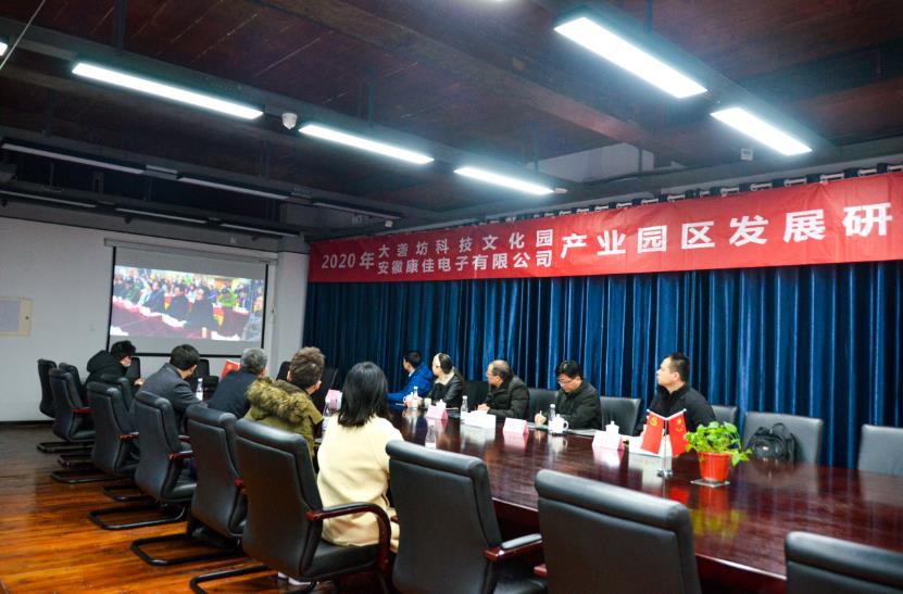 11月26日,安徽康佳電子有限公司黨委副書記、副總經理張可青,營運管理中心總監王萬葉,康佳科創公司行政總監馬泉山等領導來園開展產業園區發展研討會,園區黨委書記、總經理卞國琛陪同參觀。安康公司一行先后參觀園區消費體驗中心、園區企業純米科技、國科生物、澤萌網絡、訊飛幻境等。